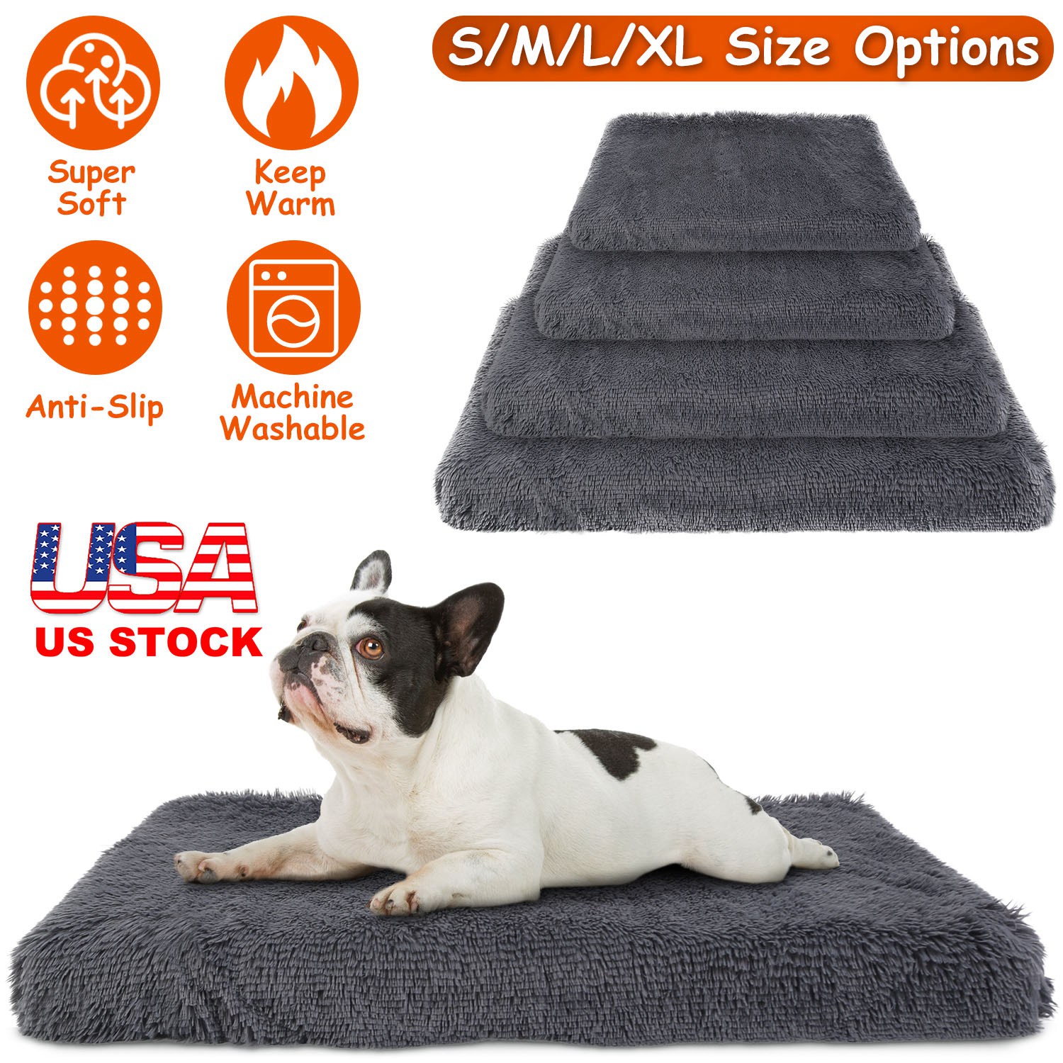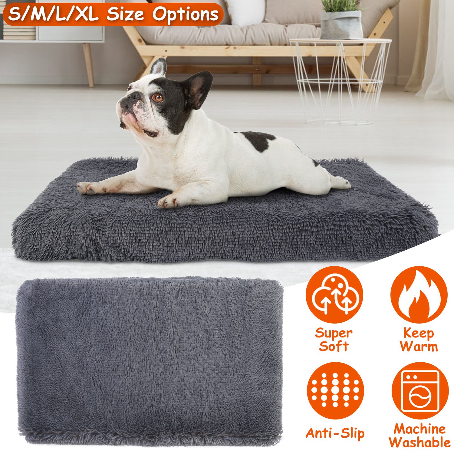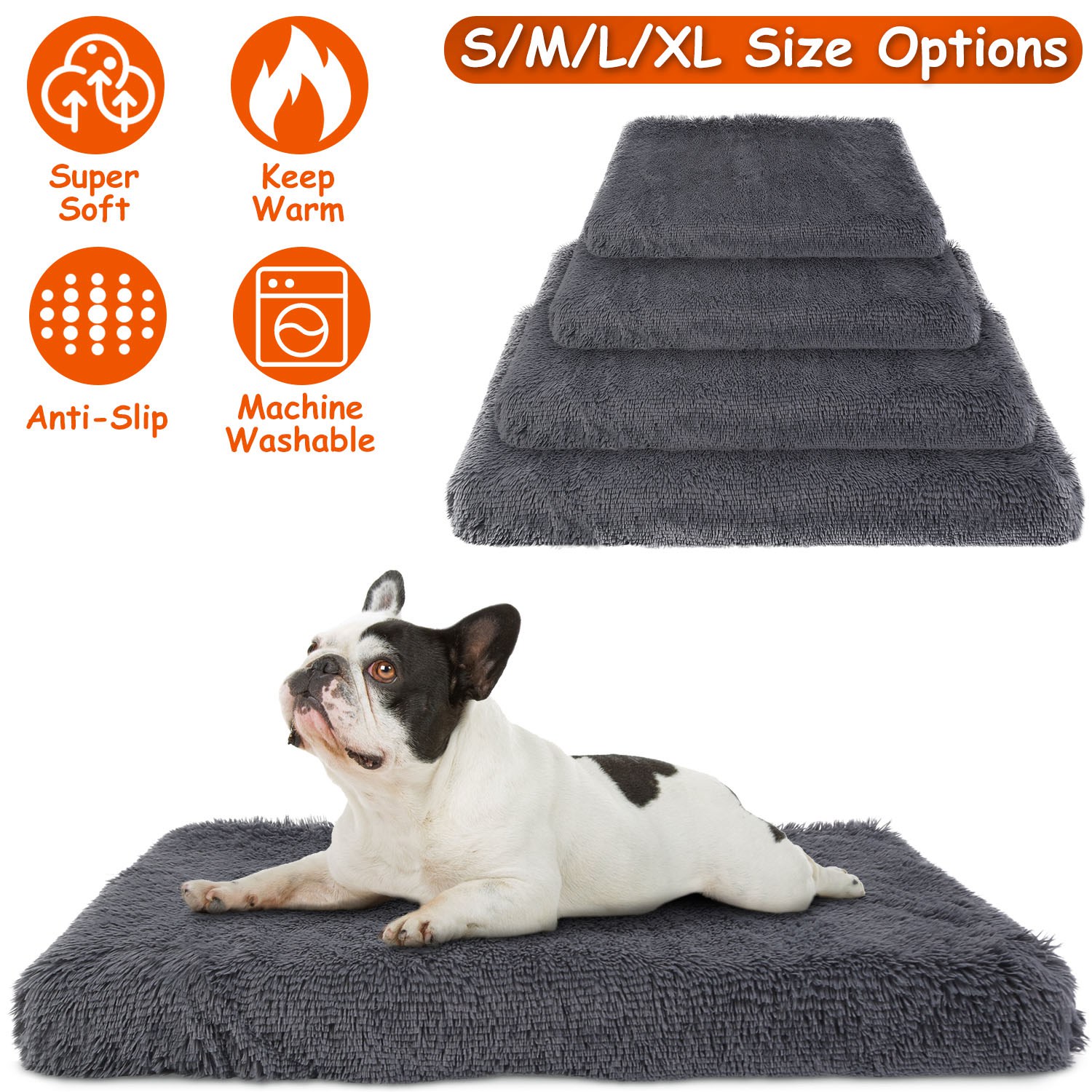 Dog Bed Soft Plush Cushion Cozy Warm Pet Crate Mat Dog Carpet Mattress with Long Plush for S/M Dogs