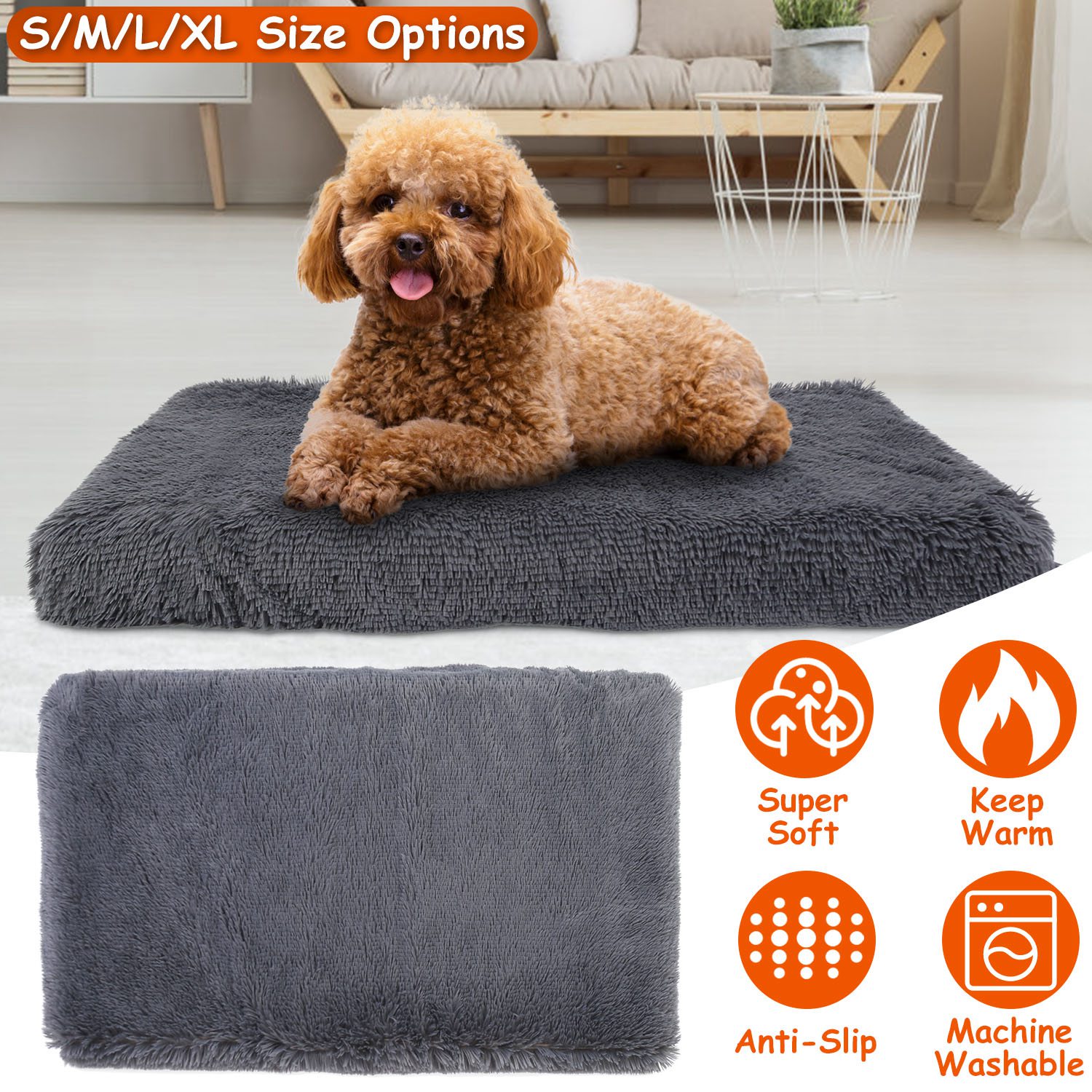 Dog Bed Soft Plush Cushion Cozy Warm Pet Crate Mat Dog Carpet Mattress with Long Plush for S/M Dogs