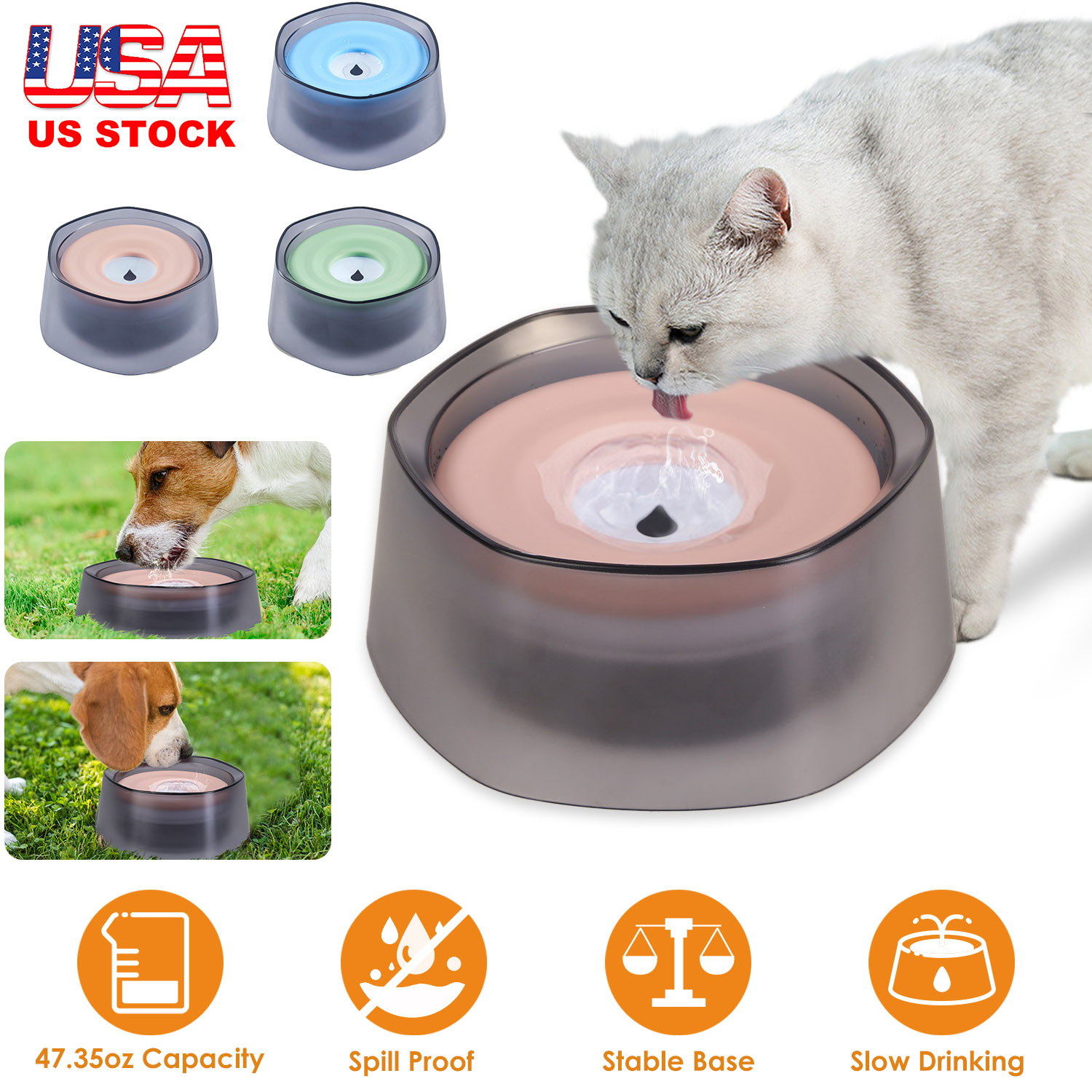 No Spill Dog Cat Water Bowl Spill Proof Slow Water Feeder 47.35oz Pet Water Dispenser Travel Dog Bowl for Dogs/Cats/Pets