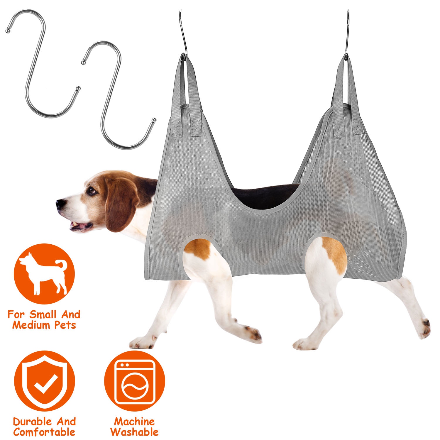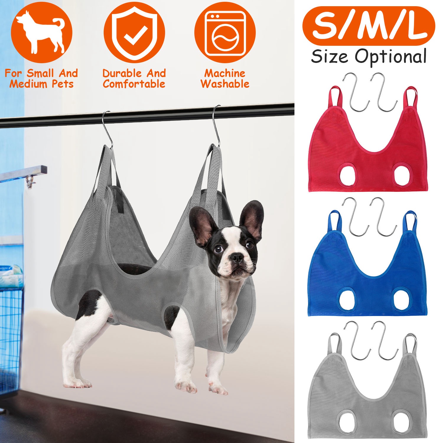 Grooming a wiggly puppy can be a challenge. Our grooming hammock provides a perfect solution by putting the uncooperative pet in the air. It will calm down immediately, which allows you to work on its legs, tail, and those hard-to-reach spots safely. Made of durable and soft Dacron, it’s suitable for small to medium pets(S/M/L for choice).