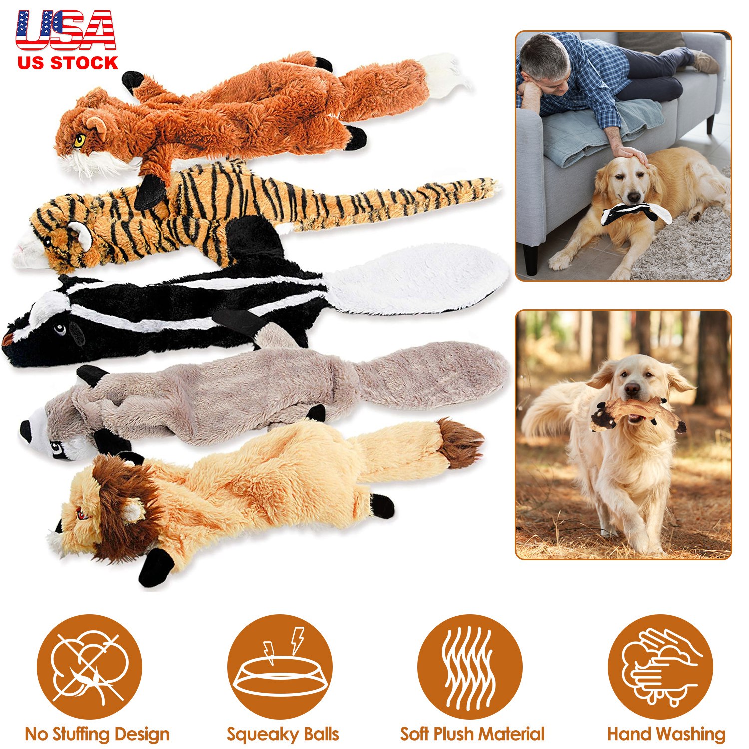 With 5 different adorable animal designs, our dog squeaky toys can bring endless fun and entertainment for small, medium, and large dogs. No-stuffing design ensures that no hidden danger of choking or swallowing while your dog is chewing or playing with these plush toys. Built-In squeaky balls make funny sound to capture your dog's attention and enthusiasm, which is helpful to release their excess energy and anxiety. Durable and odorless plush polyester won't break or collapse easily, ensuring the safety of your dogs and prolonging the lifespan of the toys.